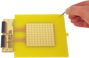 The above picture (by courtesy of Helion) shows a custom made sensor plate with an active area of 800cm² and 46 x 36 measurement cells. Nearly any design is possible. The minimal size of the measurement cells is 7 x 7mm. The maximal size is restricted by the current they have to measure and should not be much larger.
