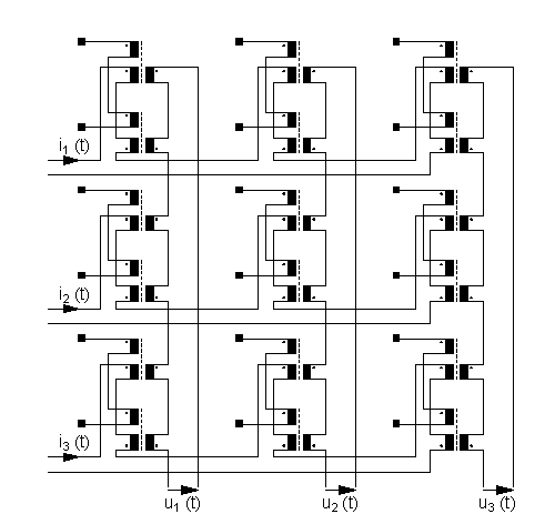 The measurement cells of the devices ot type current scan lin are build up small transformers. This is shown in the following picture.